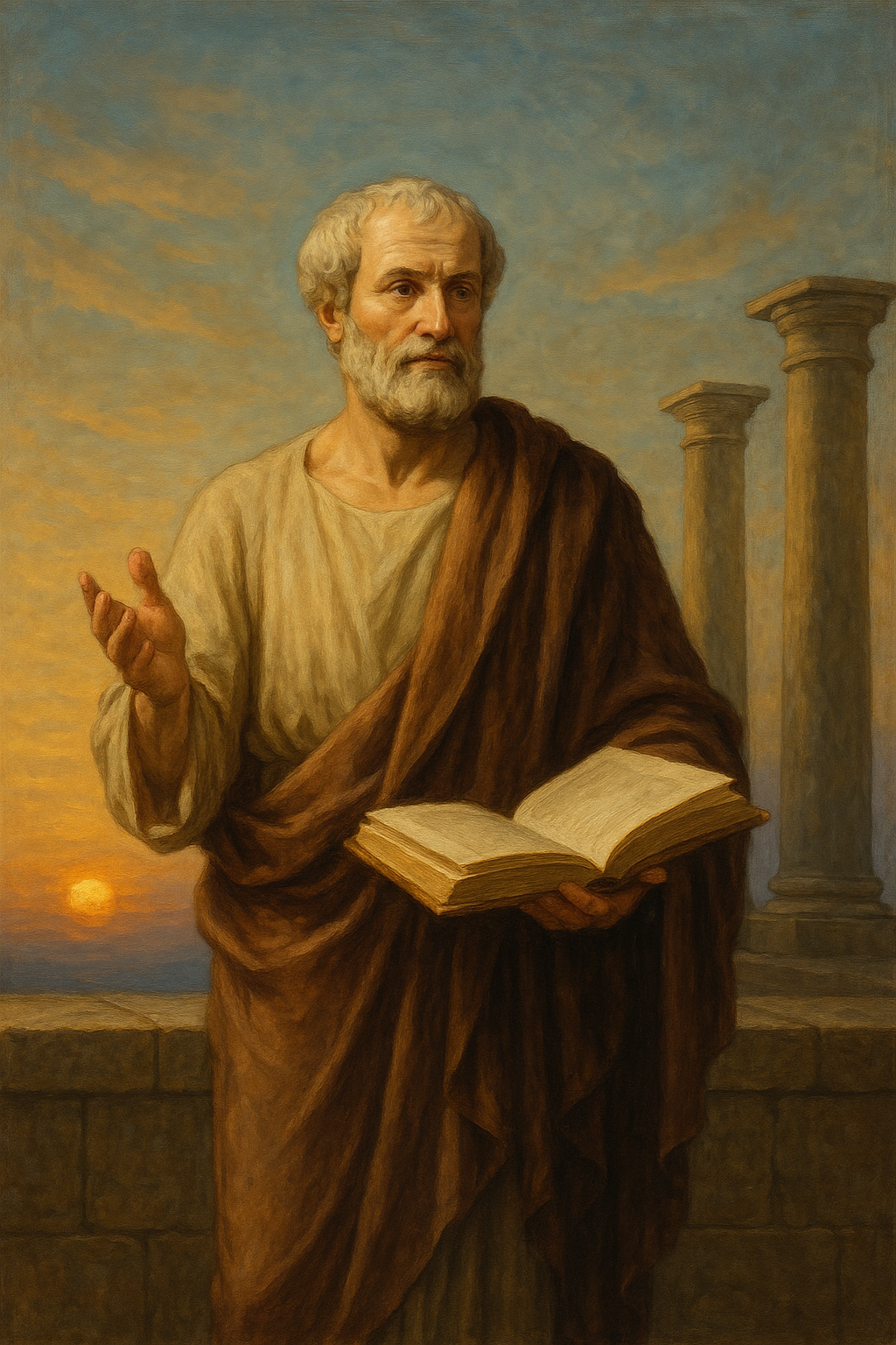 Born in Stagira, Macedonia, Aristotle spent twenty years at Plato's Academy before founding his own school, the Lyceum. Unlike his teacher Plato, who focused on ideal forms, Aristotle grounded his philosophy in the observable world, believing that wisdom comes from understanding the nature of things as they are. His works cover an astonishing range of subjects: ethics, politics, metaphysics, logic, rhetoric, poetry, biology, and psychology.