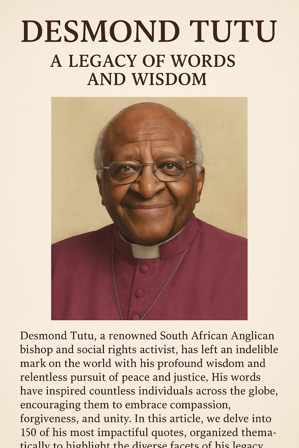 Desmond Tutu, a renowned South African Anglican bishop and social rights activist, has left an indelible mark on the world with his profound wisdom and relentless pursuit of peace and justice. His words have inspired countless individuals across the globe, encouraging them to embrace compassion, forgiveness, and unity. In this article, we delve into 150 of his most impactful quotes, organized thematically to highlight the diverse facets of his legacy.